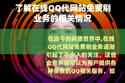 在当今的网络世界中,在线QQ代网站免费刷业务逐渐引起了不少人的关注,这些业务声称可以为用户提供各种免费的QQ相关服务,如刷人气、刷点赞、刷黄钻等,吸引了众多QQ用户的目光。