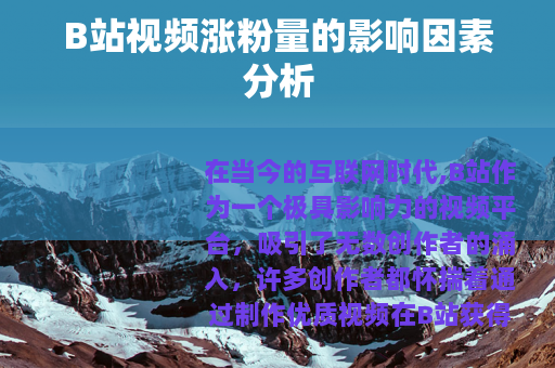 在当今的互联网时代,B站作为一个极具影响力的视频平台,吸引了无数创作者的涌入,许多创作者都怀揣着通过制作优质视频在B站获得大量粉丝的梦想,在B站一个好的视频究竟能涨多少粉呢?