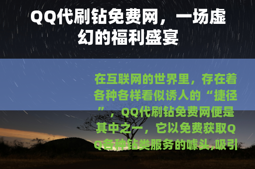 在互联网的世界里,存在着各种各样看似诱人的“捷径”,QQ代刷钻免费网便是其中之一,它以免费获取QQ各种钻类服务的噱头,吸引了众多QQ用户的目光。