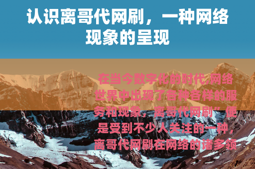 在当今数字化的时代,网络世界中出现了各种各样的服务和现象,离哥代网刷”便是受到不少人关注的一种。