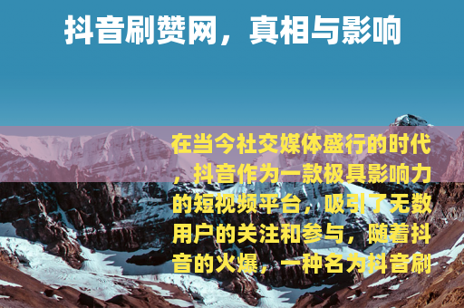 在当今社交媒体盛行的时代,抖音作为一款极具影响力的短视频平台,吸引了无数用户的关注和参与,随着抖音的火爆,一种名为抖音刷赞网的现象也悄然兴起,引发了众多用户的好奇与讨论。