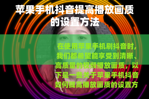在使用苹果手机刷抖音时,我们都希望能享受到清晰、高质量的视频播放画质,以下是一些关于苹果手机抖音如何提高播放画质的设置方法。