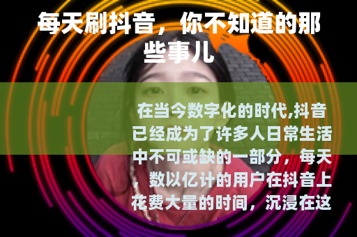 在当今数字化的时代,抖音已经成为了许多人日常生活中不可或缺的一部分,每天,数以亿计的用户在抖音上花费大量的时间,沉浸在这个充满趣味和新奇的短视频世界里。