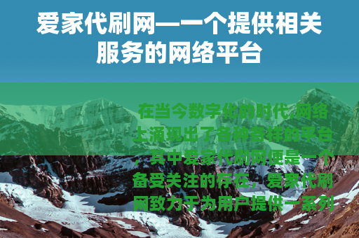 在当今数字化的时代,网络上涌现出了各种各样的平台,其中爱家代刷网便是一个备受关注的存在。