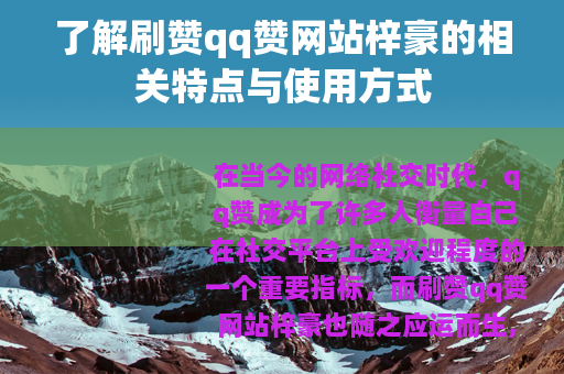 在当今的网络社交时代,qq赞成为了许多人衡量自己在社交平台上受欢迎程度的一个重要指标,而刷赞qq赞网站梓豪也随之应运而生,为众多用户提供了一种快速提升qq赞数量的途径。