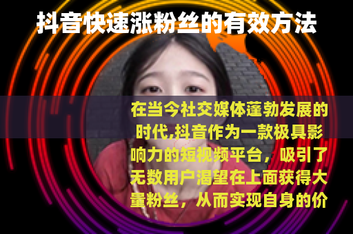 在抖音上快速涨粉丝需要付出努力和时间,通过提供优质的内容、优化视频制作和发布、积极互动与合作以及持续学习和改进等方式,逐步积累自己的粉丝群体,实现自己在抖音平台上的价值和梦想,不要被那些所谓的快速刷粉的方法所迷惑,因为这些不正当手段不仅无法带来真正有价值的粉丝,还可能会导致账号被封禁或限流,得不偿失。