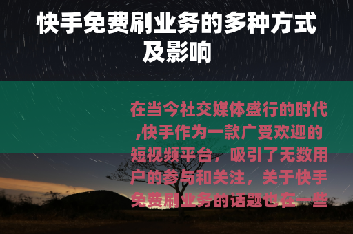 在当今社交媒体盛行的时代,快手作为一款广受欢迎的短视频平台,吸引了无数用户的参与和关注,关于快手免费刷业务的话题也在一些网络圈子里悄然兴起。