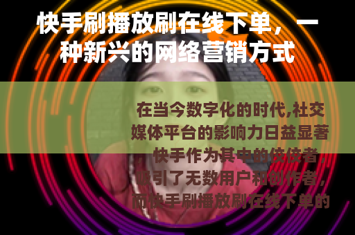 在当今数字化的时代,社交媒体平台的影响力日益显著,快手作为其中的佼佼者,吸引了无数用户和创作者,而快手刷播放刷在线下单的服务也随之悄然兴起,成为了众多人关注的焦点。