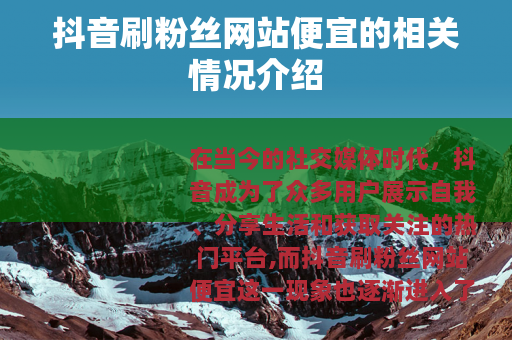 在当今的社交媒体时代,抖音成为了众多用户展示自我、分享生活和获取关注的热门平台,而抖音刷粉丝网站便宜这一现象也逐渐进入了人们的视野。
