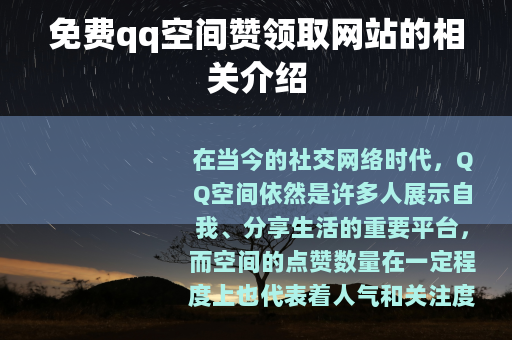 在当今的社交网络时代,QQ空间依然是许多人展示自我、分享生活的重要平台,而空间的点赞数量在一定程度上也代表着人气和关注度,免费qq空间赞领取网站应运而生,为广大用户提供了一种增加空间热度的途径。