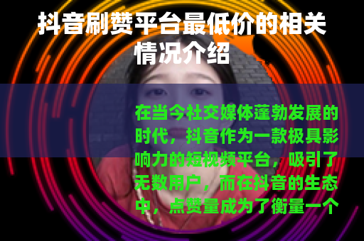 在当今社交媒体蓬勃发展的时代,抖音作为一款极具影响力的短视频平台,吸引了无数用户,而在抖音的生态中,点赞量成为了衡量一个视频受欢迎程度的重要指标之一,抖音刷赞平台最低价的话题也逐渐进入了人们的视野。