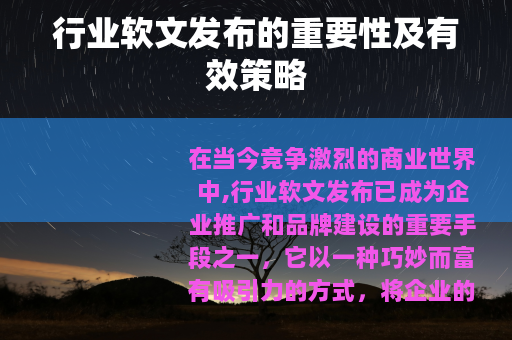 在当今竞争激烈的商业世界中,行业软文发布已成为企业推广和品牌建设的重要手段之一,它以一种巧妙而富有吸引力的方式,将企业的产品、服务或理念传递给目标受众,从而在市场中占据一席之地。