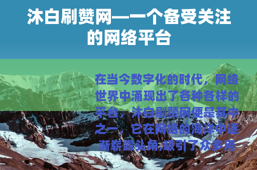在当今数字化的时代,网络世界中涌现出了各种各样的平台,沐白刷赞网便是其中之一,它在网络的海洋中逐渐崭露头角,吸引了众多用户的目光。