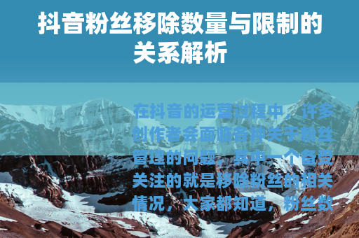 在抖音的运营过程中,许多创作者会面临各种关于粉丝管理的问题,其中一个备受关注的就是移除粉丝的相关情况,大家都知道,粉丝数量对于抖音账号的影响力和发展有着重要作用,但有时候出于某些原因,可能需要移除部分粉丝,移除多少粉丝抖音会限制呢?