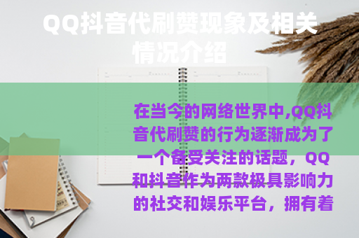 在当今的网络世界中,QQ抖音代刷赞的行为逐渐成为了一个备受关注的话题,QQ和抖音作为两款极具影响力的社交和娱乐平台,拥有着庞大的用户群体,而代刷赞服务也随之应运而生。