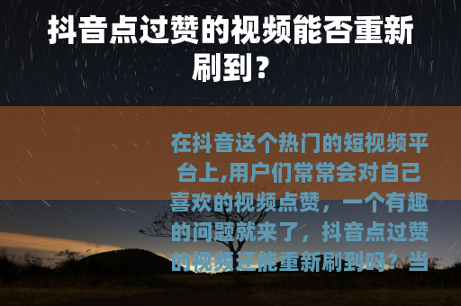 在抖音这个热门的短视频平台上,用户们常常会对自己喜欢的视频点赞,一个有趣的问题就来了,抖音点过赞的视频还能重新刷到吗?