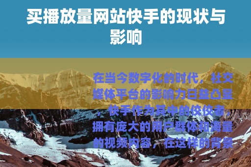 买播放量网站快手的现象是社交媒体发展过程中的一个特殊阶段的产物,它既有一定的市场需求和存在的合理性,也带来了一系列的问题和挑战,只有通过平台、创作者和用户三方的共同努力,才能营造一个更加健康、公平、有序的社交媒体环境,让快手等平台能够更好地发挥其传播价值和社会意义,为用户提供更优质的内容和服务。 对您有所帮助,您可以根据实际需求进行调整和修改,如果您还有其他问题,欢迎继续向我提问。