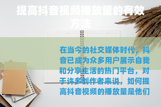 要提高抖音视频的播放量,需要从内容质量、制作技巧、标题封面、热点利用以及更新频率等多个方面入手,不断优化和改进,才能在竞争激烈的抖音平台上获得更多的关注和播放量。