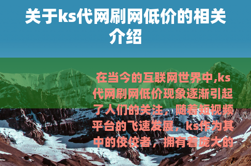 在当今的互联网世界中,ks代网刷网低价现象逐渐引起了人们的关注,随着短视频平台的飞速发展,ks作为其中的佼佼者,拥有着庞大的用户群体和极高的活跃度,而在这样的背景下,ks代网刷网低价服务也应运而生。