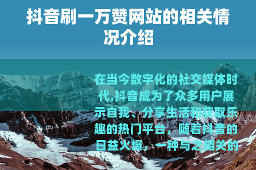 在当今数字化的社交媒体时代,抖音成为了众多用户展示自我、分享生活和获取乐趣的热门平台,随着抖音的日益火爆,一种与之相关的现象也逐渐引起了人们的关注,那就是抖音刷一万赞网站。