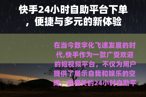 在当今数字化飞速发展的时代,快手作为一款广受欢迎的短视频平台,不仅为用户提供了展示自我和娱乐的空间,其相关的24小时自助平台下单服务也为用户带来了更多的便利与可能。