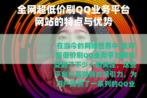 在当今的网络世界中,全网超低价刷QQ业务平台网站受到了不少人的关注,这些平台以其独特的吸引力,为用户提供了一系列的QQ业务服务。