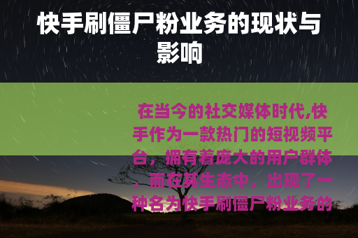 在当今的社交媒体时代,快手作为一款热门的短视频平台,拥有着庞大的用户群体,而在其生态中,出现了一种名为快手刷僵尸粉业务的现象。
