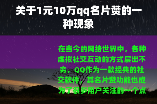 关于1元10万qq名片赞的一种现象