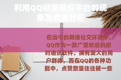 在当今的网络社交环境中,QQ作为一款广受欢迎的即时通讯软件,拥有庞大的用户群体,而在QQ的各种功能中,点赞数量往往被一些用户视为衡量自己受欢迎程度或内容质量的一个重要指标,QQ刷赞低价平台应运而生,并且在一定程度上受到了部分用户的关注。