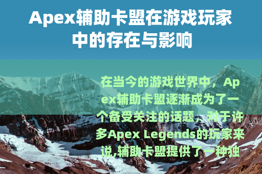 在当今的游戏世界中,Apex辅助卡盟逐渐成为了一个备受关注的话题,对于许多Apex Legends的玩家来说,辅助卡盟提供了一种独特的游戏体验增强方式。