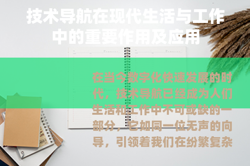 在当今数字化快速发展的时代,技术导航已经成为人们生活和工作中不可或缺的一部分,它如同一位无声的向导,引领着我们在纷繁复杂的技术世界中前行,帮助我们更高效地获取信息、解决问题以及实现各种目标。