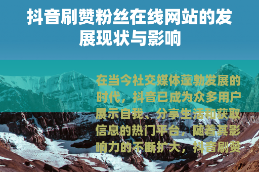 在当今社交媒体蓬勃发展的时代,抖音已成为众多用户展示自我、分享生活和获取信息的热门平台,随着其影响力的不断扩大,抖音刷赞粉丝在线网站也应运而生,在网络世界中占据了一席之地。