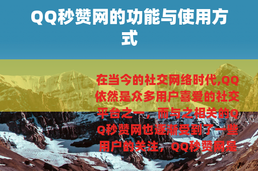 在当今的社交网络时代,QQ依然是众多用户喜爱的社交平台之一,而与之相关的QQ秒赞网也逐渐受到了一些用户的关注。