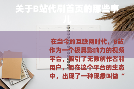 在当今的互联网时代,B站作为一个极具影响力的视频平台,吸引了无数创作者和用户,而在这个平台的生态中,出现了一种现象叫做“b站代刷首页”。