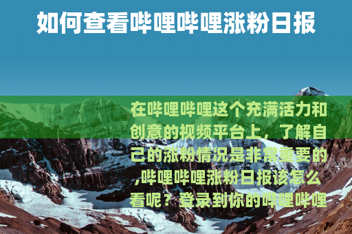 在哔哩哔哩这个充满活力和创意的视频平台上,了解自己的涨粉情况是非常重要的,哔哩哔哩涨粉日报该怎么看呢?