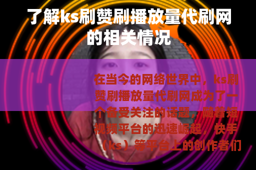 在当今的网络世界中,ks刷赞刷播放量代刷网成为了一个备受关注的话题,随着短视频平台的迅速崛起,快手(ks)等平台上的创作者们都希望自己的作品能够获得更多的关注和流量,而刷赞和刷播放量的代刷网便应运而生。