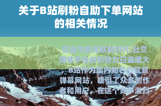 在当今的互联网时代,社交媒体平台的影响力日益增大,B站作为国内知名的视频弹幕网站,吸引了众多创作者和用户,在这个竞争激烈的环境中,一些所谓的B站刷粉自助下单网站也应运而生。
