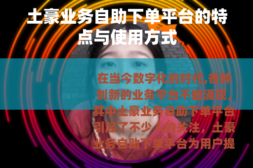 在当今数字化的时代,各种创新的业务平台不断涌现,其中土豪业务自助下单平台引起了不少人的关注。