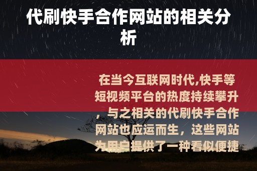 在当今互联网时代,快手等短视频平台的热度持续攀升,与之相关的代刷快手合作网站也应运而生,这些网站为用户提供了一种看似便捷的方式来提升快手账号的各项数据,如点赞数、评论数、粉丝量等,从而在平台上获得更多的关注和流量。