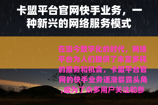 在当今数字化的时代,网络平台为人们提供了丰富多样的服务和机会,卡盟平台官网的快手业务逐渐崭露头角,成为了众多用户关注和参与的领域。