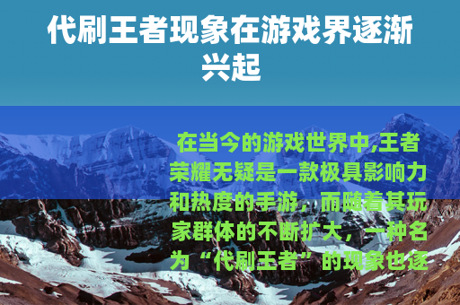 在当今的游戏世界中,王者荣耀无疑是一款极具影响力和热度的手游,而随着其玩家群体的不断扩大,一种名为“代刷王者”的现象也逐渐走进了人们的视野。