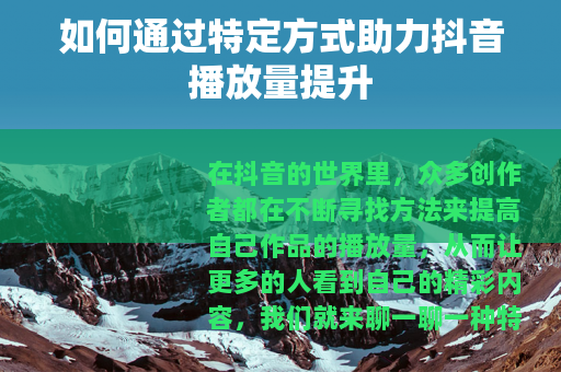 在抖音的世界里,众多创作者都在不断寻找方法来提高自己作品的播放量,从而让更多的人看到自己的精彩内容,我们就来聊一聊一种特别的途径,那就是给抖音小助手发送一串代码来提高播放量。
