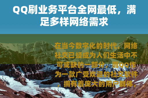 在当今数字化的时代,网络社交已经成为人们生活中不可或缺的一部分,而QQ作为一款广受欢迎的社交软件,拥有着庞大的用户群体,随着用户对QQ业务的需求不断增加,各种QQ刷业务平台也应运而生,其中一些声称全网最低的平台备受关注。