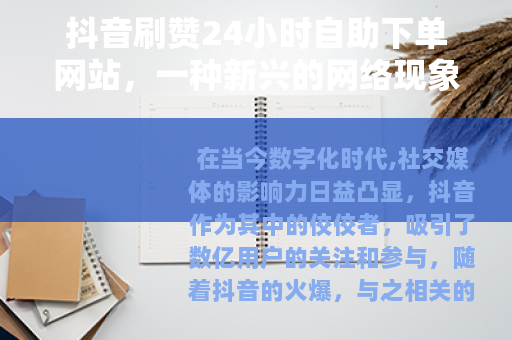 在当今数字化时代,社交媒体的影响力日益凸显,抖音作为其中的佼佼者,吸引了数亿用户的关注和参与,随着抖音的火爆,与之相关的各种服务和产业也应运而生,其中就包括抖音刷赞24小时自助下单网站。