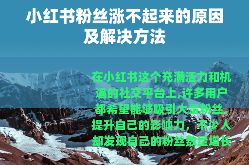 要想在小红书上成功涨粉,就需要针对以上问题,不断优化自己的内容和运营策略,提高内容质量,找到自己的定位,熟悉平台规则,合理安排发布时间,并积极与用户互动,相信你的粉丝数量会逐渐增长起来,在小红书上收获属于自己的成功。