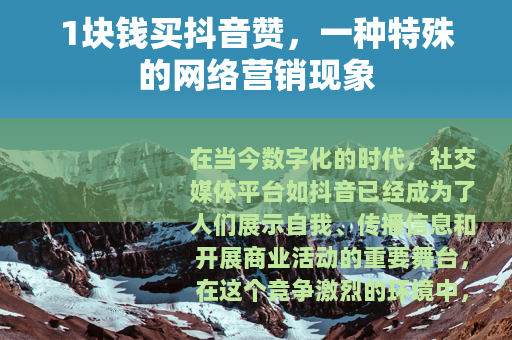 在当今数字化的时代,社交媒体平台如抖音已经成为了人们展示自我、传播信息和开展商业活动的重要舞台,在这个竞争激烈的环境中,点赞数似乎成为了衡量一个视频受欢迎程度的重要指标之一,一种奇特的现象应运而生——1块钱买抖音赞。