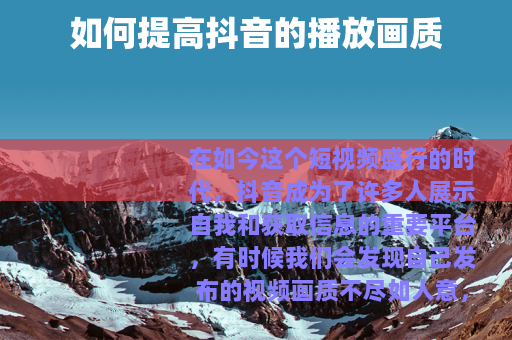 在如今这个短视频盛行的时代,抖音成为了许多人展示自我和获取信息的重要平台,有时候我们会发现自己发布的视频画质不尽如人意,或者在观看他人视频时,画质也不够清晰流畅,怎样提高抖音的播放画质呢?以下是一些实用的方法。
