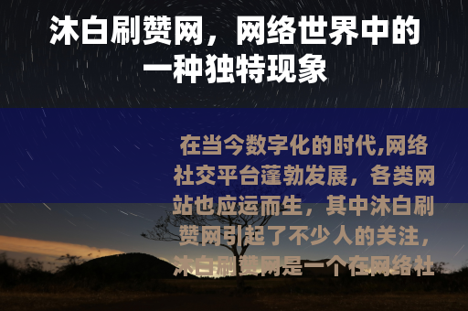 在当今数字化的时代,网络社交平台蓬勃发展,各类网站也应运而生,其中沐白刷赞网引起了不少人的关注。