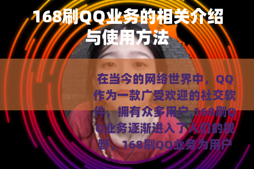 在当今的网络世界中,QQ作为一款广受欢迎的社交软件,拥有众多用户,168刷QQ业务逐渐进入了人们的视野。