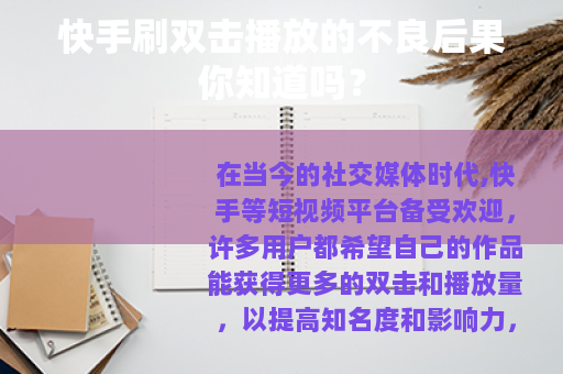 在当今的社交媒体时代,快手等短视频平台备受欢迎,许多用户都希望自己的作品能获得更多的双击和播放量,以提高知名度和影响力,一些人却试图通过不正当的手段,如刷双击播放来达到目的,这种行为其实存在着诸多不良后果。